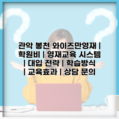 관악 봉천 와이즈만영재는 대한민국 서울 관악구에 위치한 학원으로, 뛰어난 영재교육 프로그램으로 유명해요. 이곳의 목표는 각 학생의 잠재력을 키우고, 각자의 진로에 맞는 맞춤형 교육을 제공하는 것이에요.