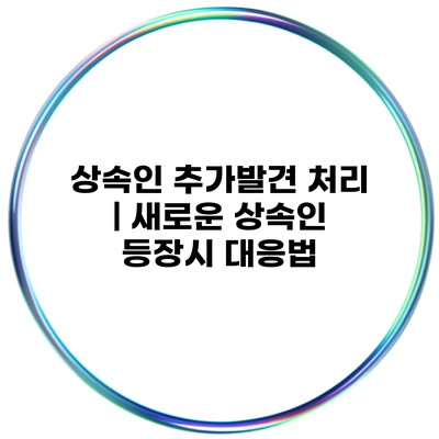 A1: 상속인 추가발견 처리는 상속 절차 중 새로운 상속인이 발견되는 것을 의미하며, 이를 통해 상속 절차가 복잡해질 수 있습니다.