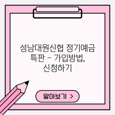 ✅ 성남대원신협 정기예금 특별 혜택을 놓치지 마세요!
