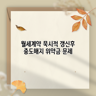 월세계약의 묵시적 갱신과 중도해지 시 위약금 문제는 세입자와 임대인 모두에게 중요한 이슈입니다. 이를 통해 서로의 권리와 의무를 잘 이해하고 적절히 대처해야 해요. 계약서의 조항을 신중하게 검토하고, 필요한 경우 전문가의 조언을 받는 것이 중요해요. 여러분은 계약을 체결하기 전부터 이와 관련된 사항을 충분히 이해하고 대비하는 것이 필요해요. 소중한 권리를 지키기 위해 지금 바로 계약서를 살펴보세요!
