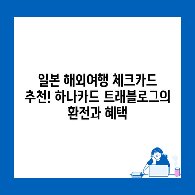 일본으로의 해외여행을 계획하고 있다면, 환율 우대와 편리한 결제 방법을 제공하는 체크카드를 사용하는 것이 매우 중요합니다. 체크카드는 현금을 소지할 필요 없이 해외에서도 손쉽게 결제할 수 있게 해줍니다. 특히, 하나카드의 트래블로그 서비스는 다양한 혜택을 제공하여 여행객들에게 큰 인기를 얻고 있습니다. 이번 글에서는 일본 해외여행에 적합한 체크카드와 하나카드 트래블로그의 다양한 서비스를 심층적으로 알아보겠습니다.