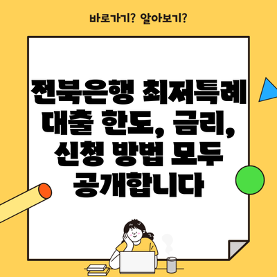 ✅ 전북은행 최저특례 대출의 혜택과 조건을 빠르게 알아보세요!