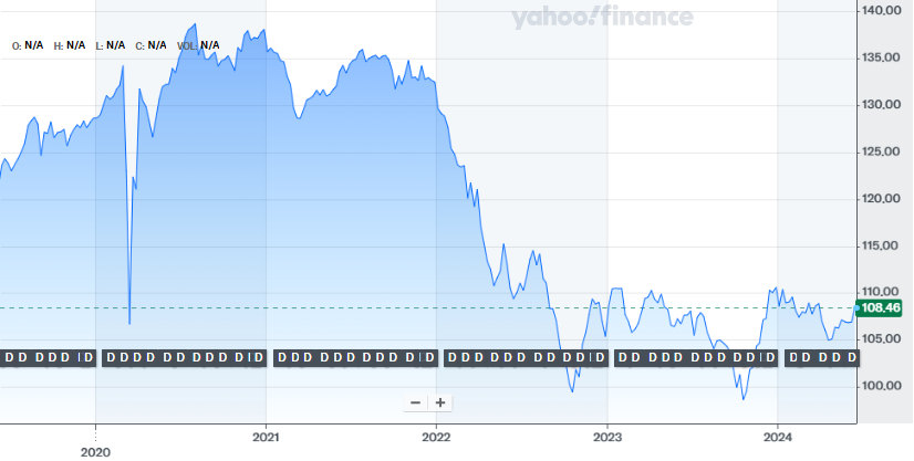 이 ETF의 가장 큰 장점은 역시 안정적인 배당수익률이에요. 지난 12개월 간 배당수익률이 3.7%로 꽤 알짝알짝한 수준이라고 할 수 있겠네요?! 물론 주식과 같이 자본이득 기회도 있지만, 주된 투자 포인트는 회사채 투자를 통한 이자수익이라고 봐야 할 거 같아요.
