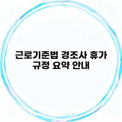 근로기준법에 명시된 경조사 휴가 규정은 항상 변화할 수 있으며, 상황에 따라 내부 정책이 가장 중요한 역할을 해요. 다음은 이와 관련하여 알아야 할 법률적 기준이에요.