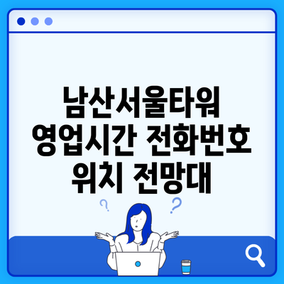 남산 서울타워는 서울의 아름다운 전경을 즐길 수 있는 최고의 장소예요. 영업시간과 전화번호, 그리고 위치 정보를 미리 파악하고 방문하신다면 더욱 편리하게 여행을 즐길 수 있답니다.