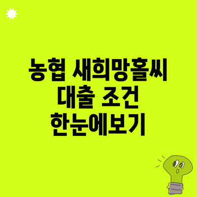 ✅ 농협 새희망홀씨 대출의 모든 조건을 자세히 알아보세요.