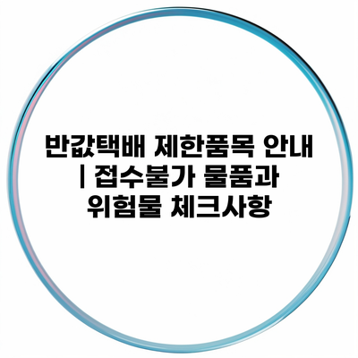 반값택배를 이용하기 위해서는 다음과 같은 접수불가 물품을 반드시 확인해야 해요. 이 물품들은 법적으로 규정된 품목이거나, 운송 중 위험 요소가 될 수 있는 물품이에요.