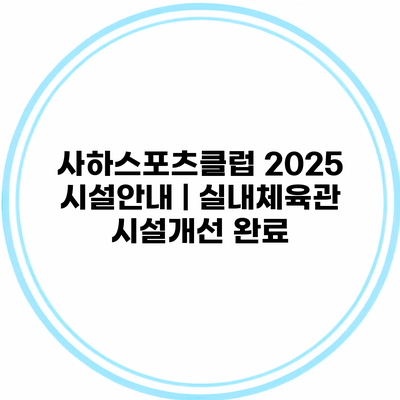 사하스포츠클럽 2025 시설안내: 실내체육관 시설개선 완벽 가이드
