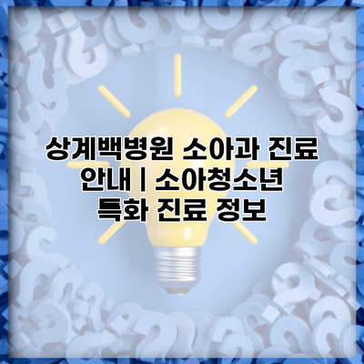 A1: 상계백병원 소아과는 소아청소년 환자를 위해 전문적인 진료를 제공합니다.