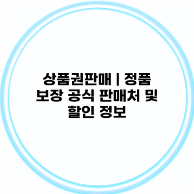 상품권을 구매하고 싶으신가요? 좋은 상품을 저렴하게 구입할 수 있는 기회를 찾는다면 상품권 판매처를 잘 활용하는 것이 중요해요. 이 글에서는 정품 보장 상품권의 공식 판매처와 할인 정보를 자세히 알아보겠습니다.