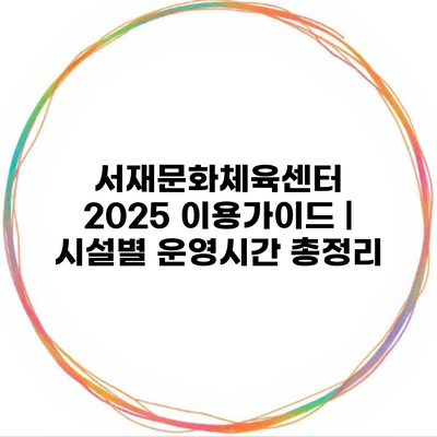서재문화체육센터 2025 이용가이드: 시설별 운영시간 총정리