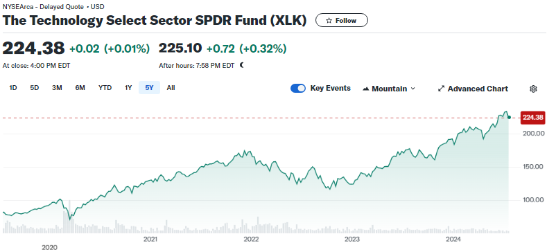 기술 섹터 ETF 중 가장 주목받는 것이 바로 XLK 에요! 이 ETF는 미래를 이끌어갈 혁신적인 기업들로 구성되어 있죠. 역대 최고 기술기업들이 대거 포진되어 있어 기존 기술주에 투자하고 싶다면 주목해 볼만 해요 🙂