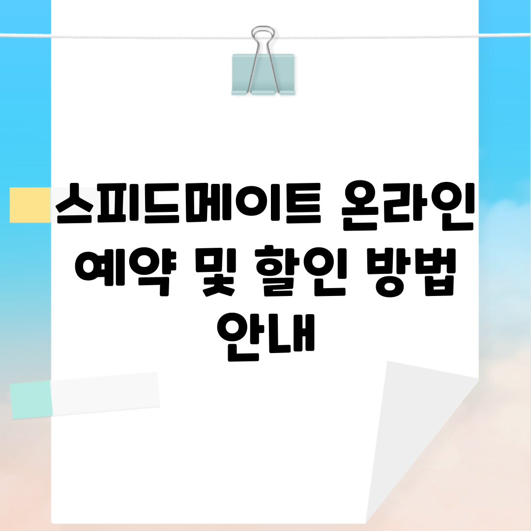 이제부터 스피드메이트 온라인 예약 및 할인 방법 안내에 대해 자세히 알아보겠습니다.