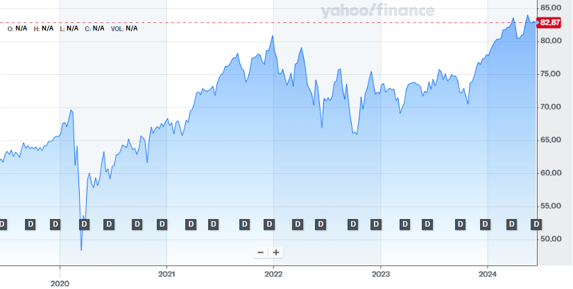 그렇다고 변동성이 너무 낮아서 수익률이 떨어지는 건 아니에요. 실제로 5년 수익률을 보면 연평균 11.26%의 수익률을 기록했거든요. 이는 S&P500 지수 연평균 수익률 11.19%를 소폭 웃돌아요! 🙂 낮은 변동성에도 불구하고 좋은 수익률을 유지한 셈이죠.