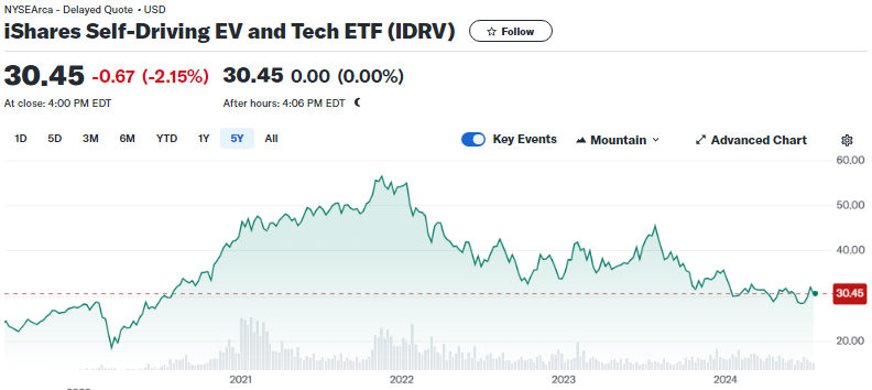 IDRV는 iShares 자회사인 BlackRock이 운용하는 전기차 및 미래 모빌리티 관련 기업 ETF예요. 2018년 6월 출시된 이 ETF는 전기차, 배터리, 자율주행 등 관련 분야 50개 종목에 투자하고 있죠. 연간 보수율은 0.47%로 합리적인 편이랍니다.