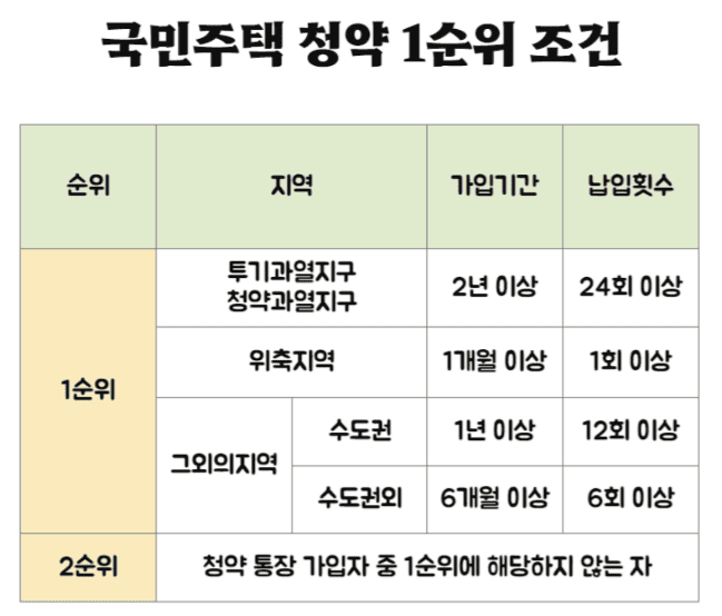 국민주택 청약 1순위 조건은?