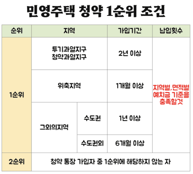 민영주택 청약 1순위 조건은?