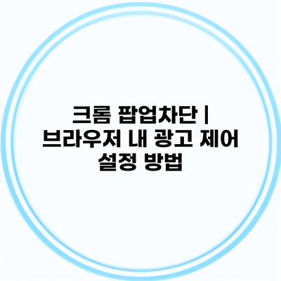 크롬에서 광고를 차단하는 방법은 팝업 차단과 함께 추가적인 설정을 통해 최적화할 수 있어요. 이제 광고가 노출되는 방식을 제어하는 방법에 대해 설명할게요.