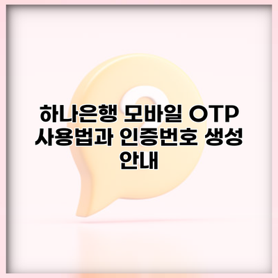 하나은행 모바일 OTP 사용법과 인증번호 생성 안내