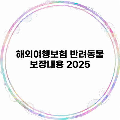 해외여행보험과 반려동물 보장내용: 2025년을 대비한 필수 정보