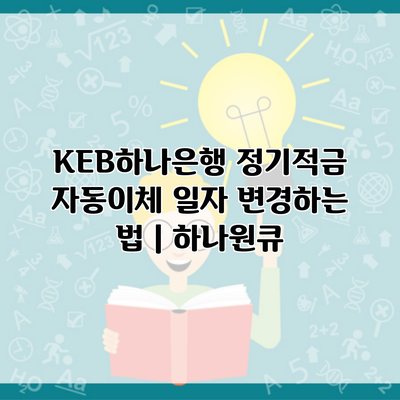 KEB하나은행에서 자동이체 일자를 변경하는 방법은 간단합니다. 다만, 몇 가지 필수 단계를 따라야 합니다.