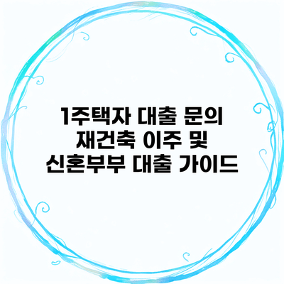 1주택자 대출 문의 재건축 이주 및 신혼부부 대출 가이드