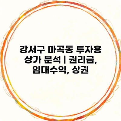강서구 마곡동 투자용 상가 분석 | 권리금, 임대수익, 상권
