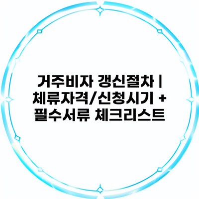 거주비자 갱신절차 | 체류자격/신청시기 + 필수서류 체크리스트