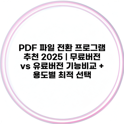 PDF 파일 전환 프로그램 추천 2025: 무료버전 vs 유료버전 기능비교 + 용도별 최적 선택